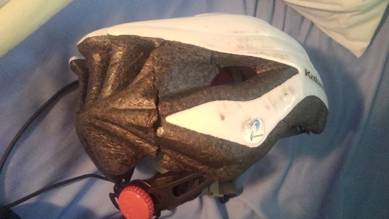 ヘルメットはかち割れ